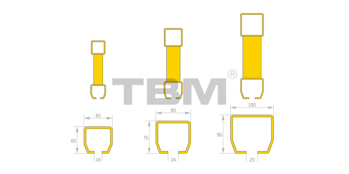 60, 75 및 90 시리즈의 세 가지 트랙 커넥터 모델은 다음과 같습니다.
